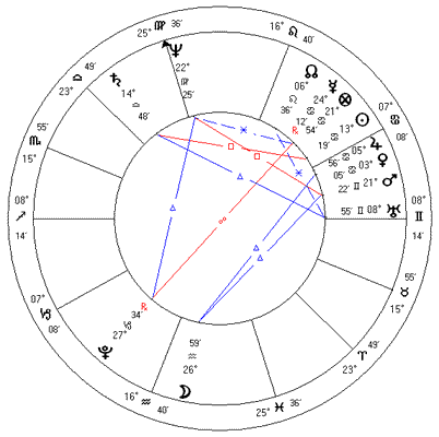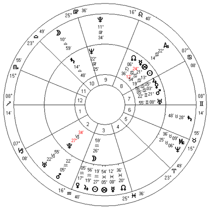 perto de uma casa, a incendiá-la; as chamas brotam de toda parte. Nessa figura, entre outras coisas, nota-se que Júpiter, regente do Ascendente, está na cúspide da VIII; Urano, no Descendente, onde os astros se põem, morrem; a Lua - regente da VIII e dispositora de Vênus, de Júpiter, do Sol e de Mercúrio - está na III, em Aquário, signo regido por este Urano que se opõe ao Ascendente; a IV é regida por Netuno e co-regida por Júpiter, regente do Ascendente - sendo que Netuno está no Meio Céu, em oposição à cúspide da IV, em queda em Virgem. Em 2000, junto com o agrupamento em Touro, estarão transcorrendo quase 224 anos da Independência. A direção simbólica do Sol, astro da VIII, para esta época, dá-se em conjunção com a Lua - a regente da VIII e regente natural da IV. Isso indica possível período particularmente marcante da vida norte-americana, com reflexos internacionais, pois o Sol rege a IX. Além de a direção do Sol estar em conjunção com a Lua, ela está em semi-sextil com Plutão, na II. Mas... devemos ter em mente que o componente astrológico, embora importante, é apenas um, no conjunto dos elementos que compõem os quadros dos eventos. Raul V.